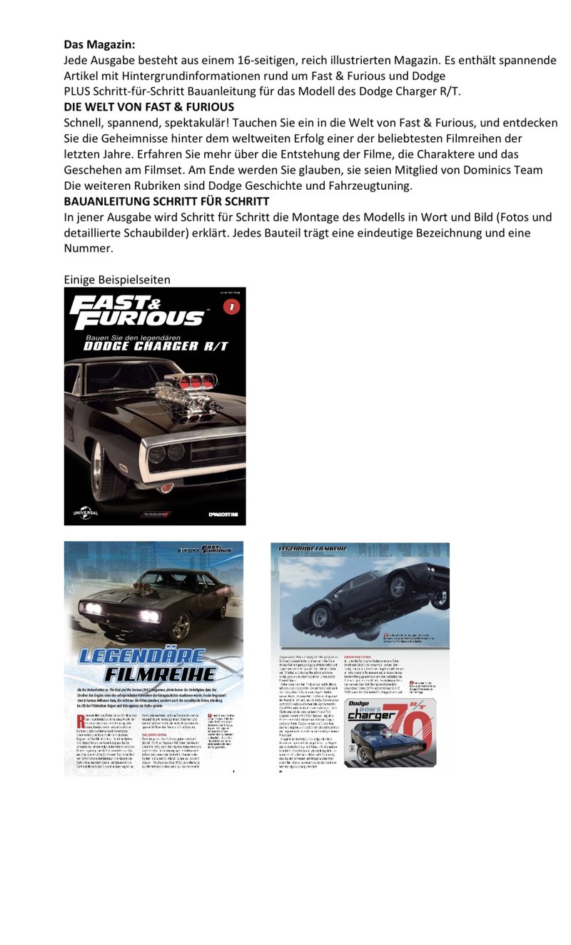 Und für einen euro aufpreis. Immer noch günstiger als das original, aber trotzdem ganz schön viel geld für ein modellauto. 17.01.2020 · in wöchentlichen abständen erscheinen die einzelnen ausgaben bestehend aus einem magazin und bauteilen für das dodge charger r/t modell. 21.12.2019 · das modell des dodge charger r/t gibt es aktuell nur als abo. Ausgabe für 14,99€ in der. Sonderpreis 14,99€ 7,50€ schau dir eine kurze vorschau an.. 21.01.2020 · der einstieg ist mit einem euro sehr günstig.